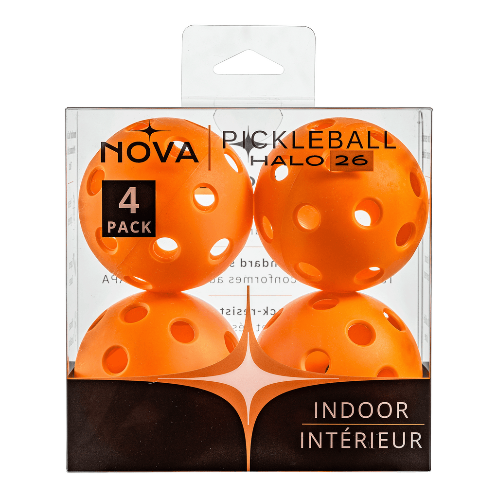 Fluides, rapides et réactives, les balles d'intérieur NOVA Halo 26 sont conçues pour les joueurs recherchant précision et contrôle. Avec 26 trous parfaitement espacés et un toucher légèrement plus doux, la Halo 26 offre un vol plus précis et des atterrissages plus doux sur les surfaces intérieures comme le parquet et les sols de gymnase. Pas de dérapages ni de points morts : un jeu net et régulier à chaque fois.